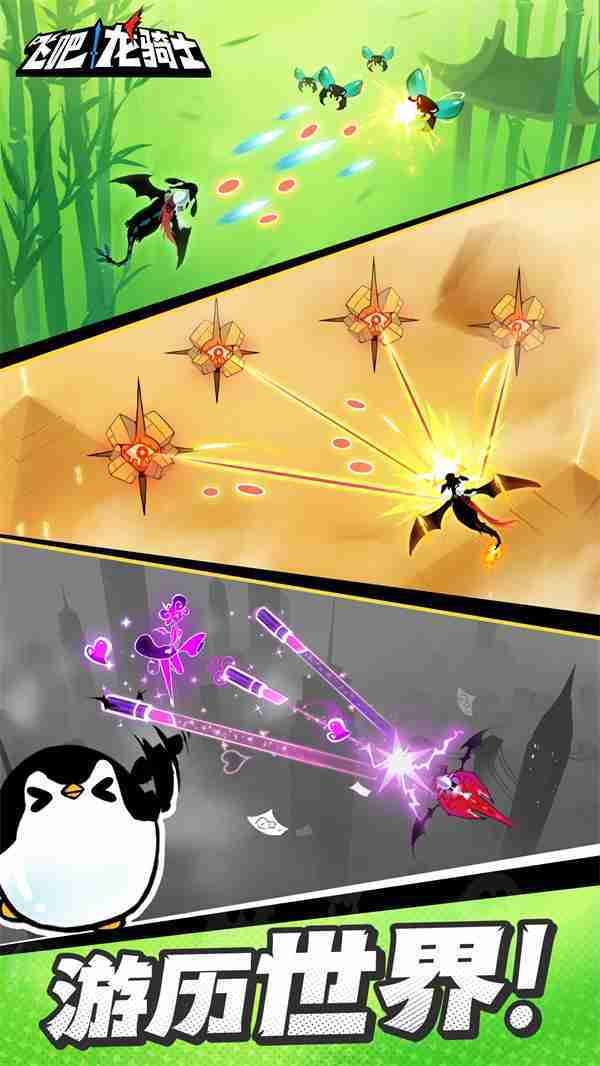 《飞吧龙骑士》是一款集合了飞行弹幕射击、、、Roguelike要素和挂机养成的休闲手游,,,极具创意的吞食子弹反击玩法,,,,突破传统飞行射击的刻板限制,,,带来了独特的爽快清屏体验。。