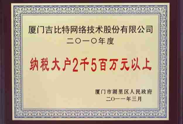 日前,,公司被厦门市湖里区人民政府授予了“2010年纳税大户”的荣誉称号,,,,充分体现了公司一贯合法纳税、、、、诚信经营的良好企业社会公民行为。。